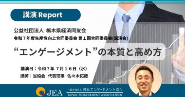 当協会の代表理事を務める佐々木が、栃木県経済同友会にて『エンゲージメントの本質と高め方』を講演しました。―― 生産性向上に向けた3つのアプローチを…